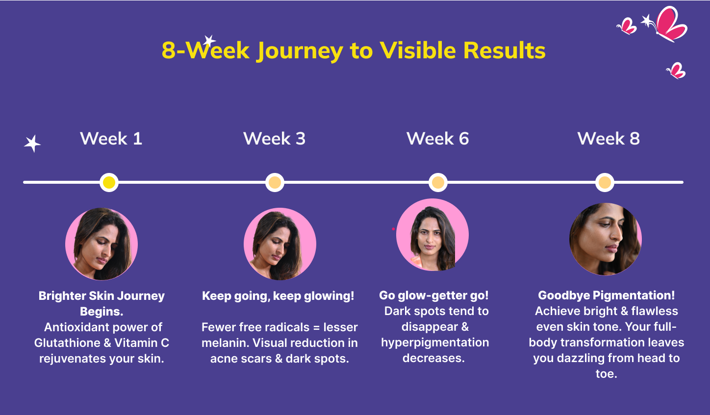 • Better absorption ensures faster results compared to other skin brightening tablets.